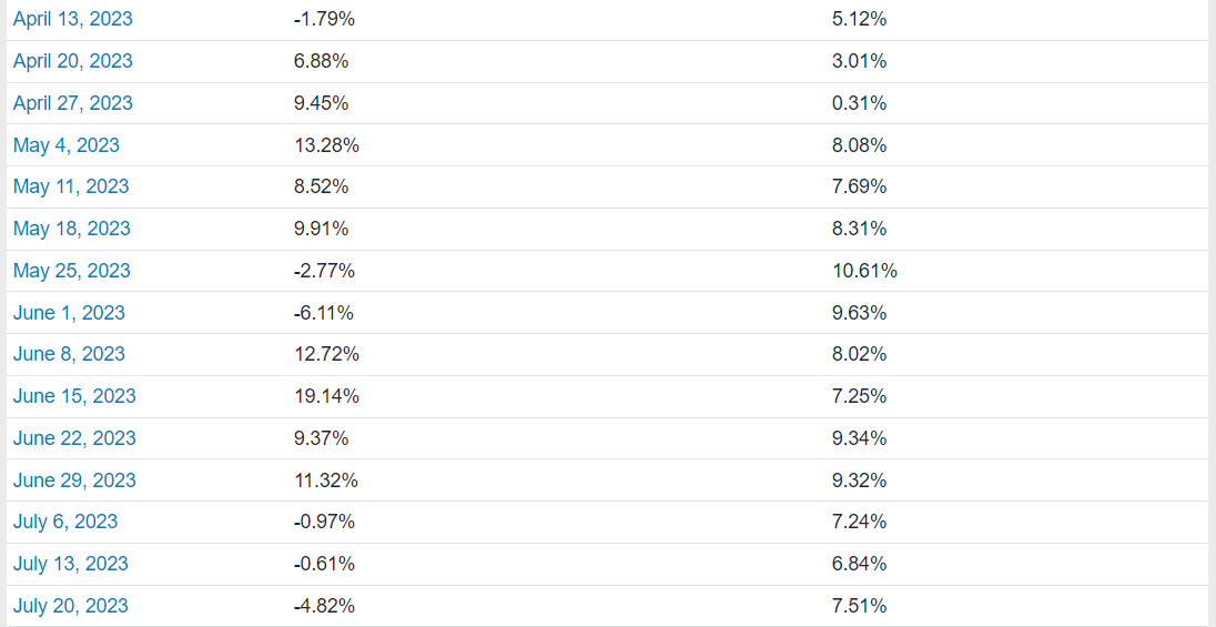 We currently have six-month returns for our first forty-four weekly top ten names cohorts. Here is how they have all done.