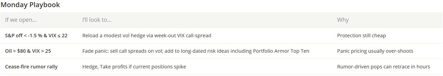 Stay nimble, keep an eye on crude and vol, and remember: you don’t need to buy every dip or short every rip. You just need to catch the fat part of the move and manage the tail risk. For managing tail risk, you can use the Portfolio Armor iPhone app (or website, if you don't have an iPhone).