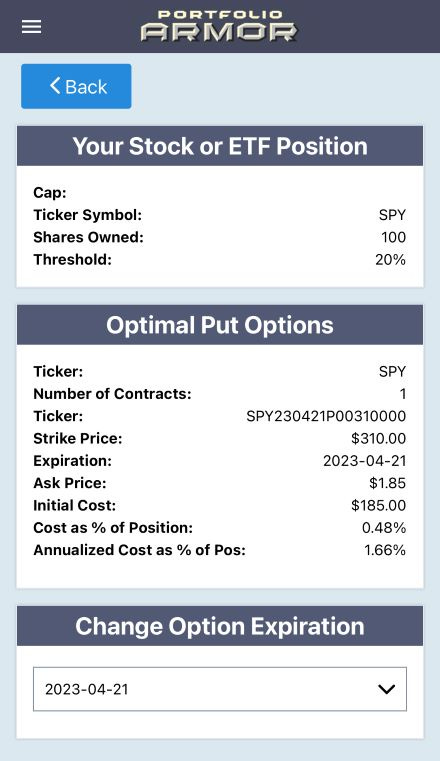 Screen capture via the Portfolio Armor iPhone app on 1/4/2023.