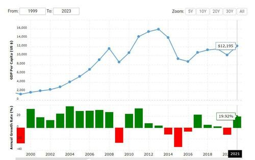 Finally, as of 2021, per capita income in Russia was up 816% since Putin became president.
