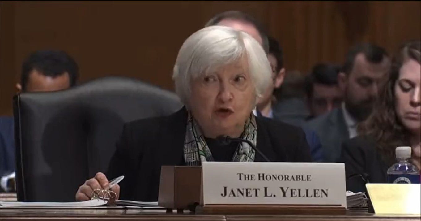 Treasury Secretary Yellin testifying before the Senate.