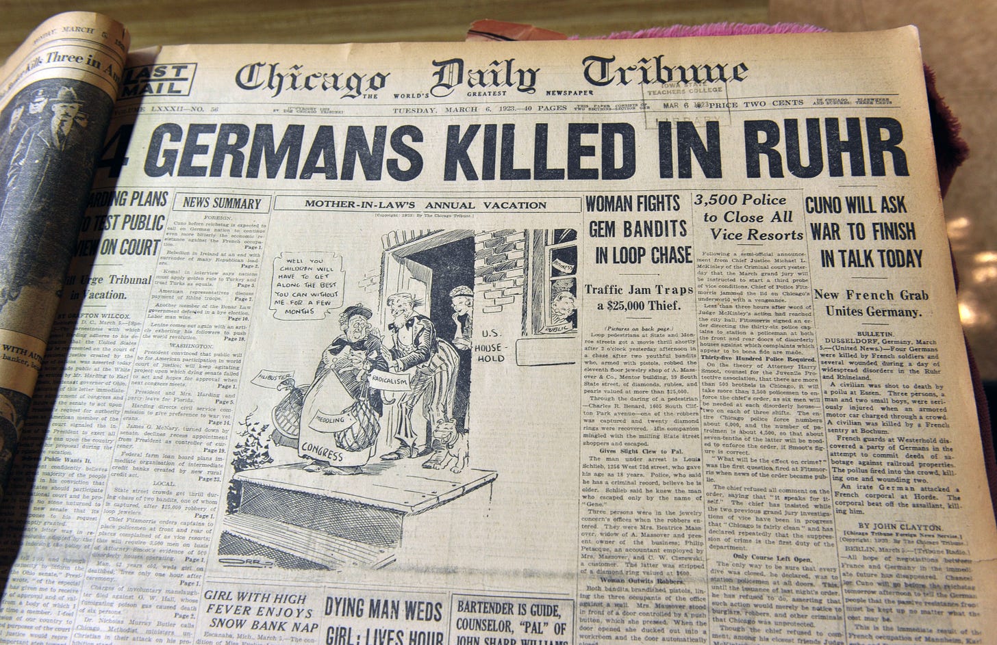 Industrial shutdown: After France and Belgium occupied the Ruhr in 1923 to enforce reparations, Germany answered with passive (and some not-so-passive) resistance. Factories and mines in the country’s industrial heartland stopped producing. The state paid idled workers anyway.