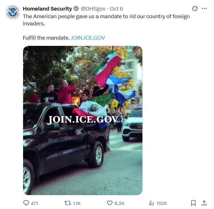 Deputy White House Chief of Staff and Trump senior adviser Stephen Miller argues that ICE facilities are federal property executing a federal mission and that the President has undisputed statutory and constitutional authority to deploy troops or other federal protective assets to defend them—even if a district judge objects (post).