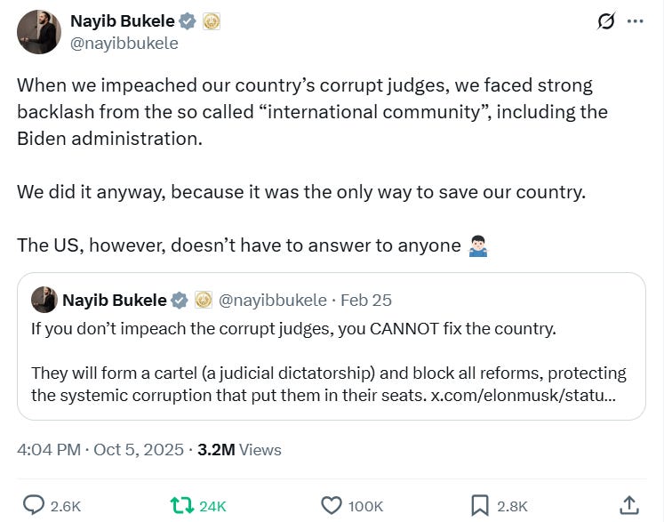 When Nayib Bukele purged corrupt judges and then “imprisoned his way” to public safety, he took heat from the “international community”—and did it anyway.