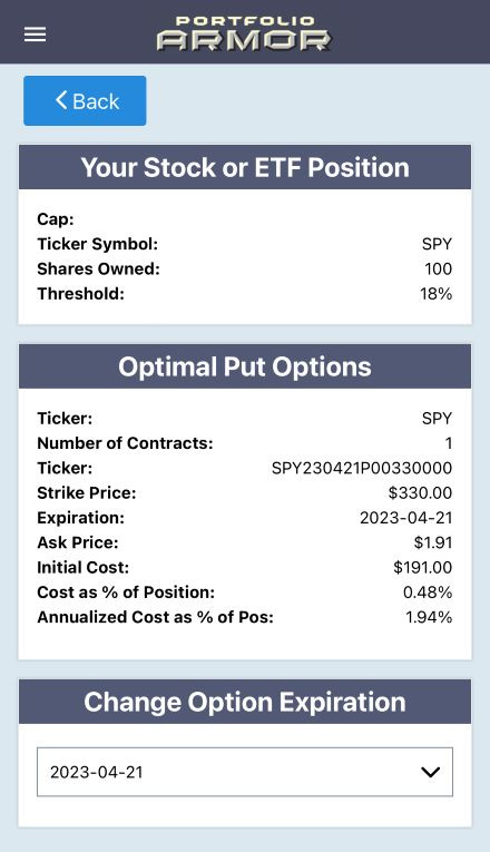 And if the market drops, Netflix shares will almost certainly drop with it. It might be a good time to hedge Netflix if you own round lots of it, or to hedge market risk via optimal puts on the SPDR S&P 500 Trust ETF (SPY) as in the example below.