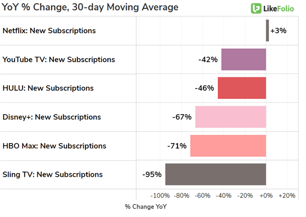 Although, as LikeFolio notes there, new streaming subscription rates are falling across the industry, Netflix has been bucking the trend.