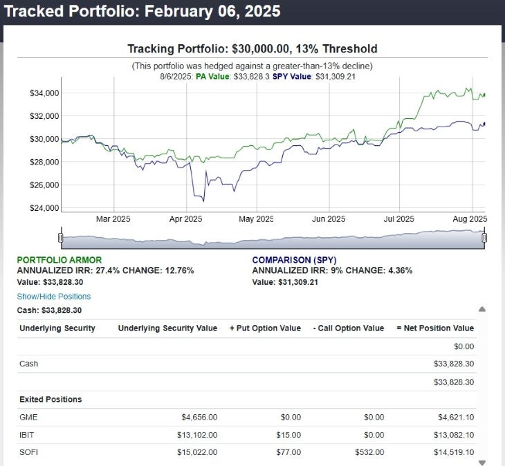 See your own build: You can generate a hedged portfolio with your account size and risk cap on Portfolio Armor (paid tool; month-to-month, cancel anytime).