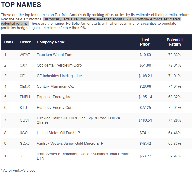 This is always the hard part, because it's not enough to figure out what's going to happen, but whether it's already been priced in or not, and what other factors may be in play. For example, in our post on the economic war against Russia last April, we included our system's top names at the time, which seemed to make sense in light of the conflict: consider the Teucrium Wheat Fund (WEAT), our top name then. After all, one would think that a war between two of the world's largest wheat producers, Russia and the Ukraine, would lead to a spike in wheat prices.