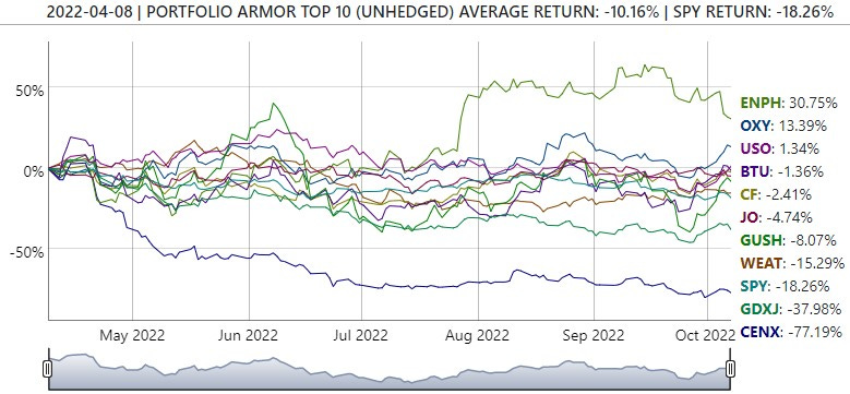 Similarly, one might have thought Century Aluminum Co. (CENX) would have benefited from sanctions taking Russian aluminum off the market in the West, and yet its shares plummeted 77% over the same period. Fortunately, investors in our hedged portfolios were hedged, so none of them were down anywhere near that much in CENX. Similarly, investors in our Substack's core strategy use 10% trailing stops to avoid steep declines in our top names while hedging to limit market risk.