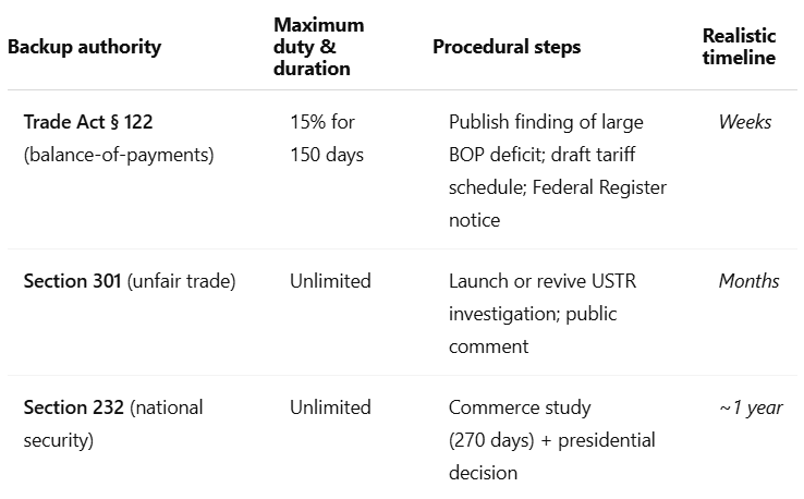 Fast‑track § 122 tariffs: If the White House publishes a new schedule within a month, the rally could fade by late summer.