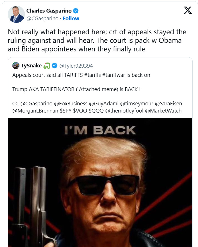 Maybe it was a nothingburger after all—an appeals court just reinstated Trump’s tariffs.