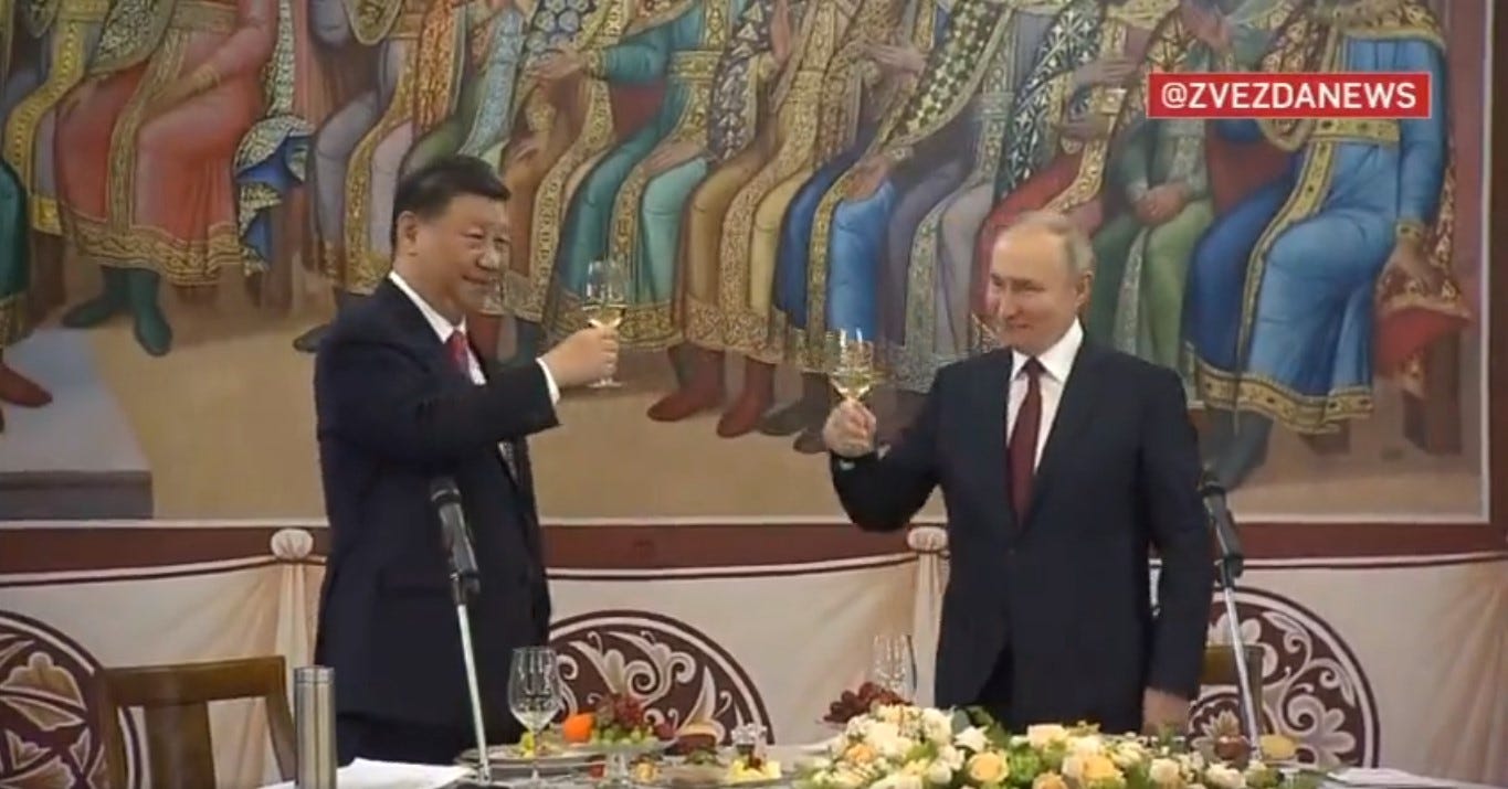 Presidents Putin and Xi sharing a toast in Moscow this week.