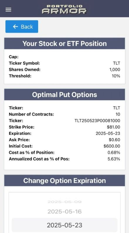 If you want to hedge against U.S. Treasury bonds crashing as their yields spike, you can buy optimal puts on the iShares 20+ Year Treasury Bond ETF (TLT 0.00%↑ ).