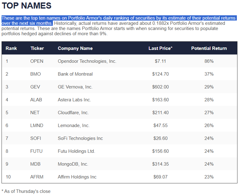 Below are Portfolio Armor’s current top ten names as of Thursday’s close.