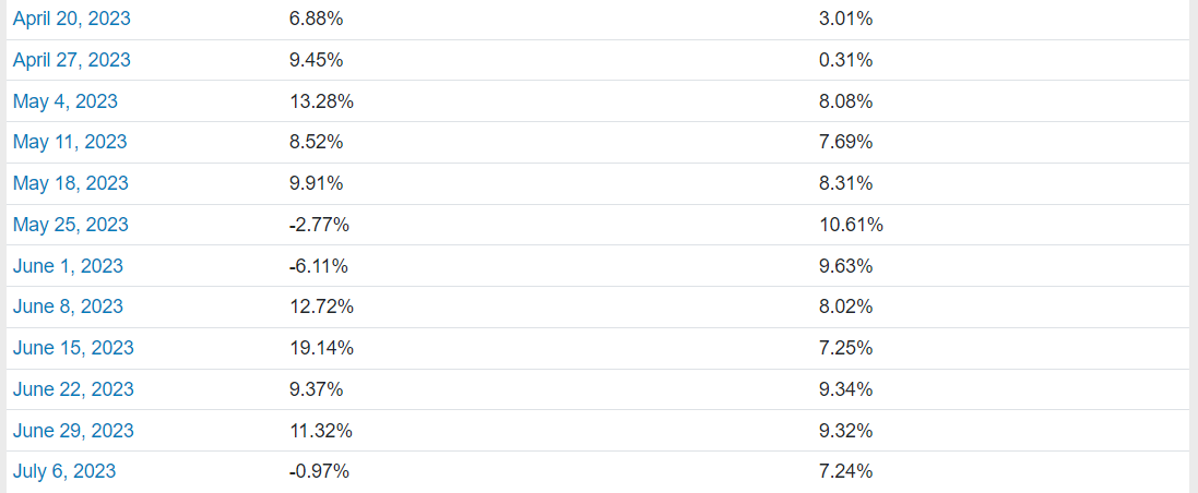 A Top Names Performance Update Before we get to this week’s top ten names, let’s look at the final, 6-month performance of our top names from January 5th of this year. On average, our top ten names from January 5th were up 39.55% over the next six months, versus up 17.69% for the