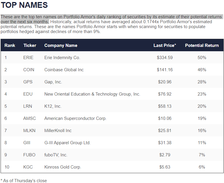 Below are Portfolio Armor’s current top ten names as of Thursday’s close.