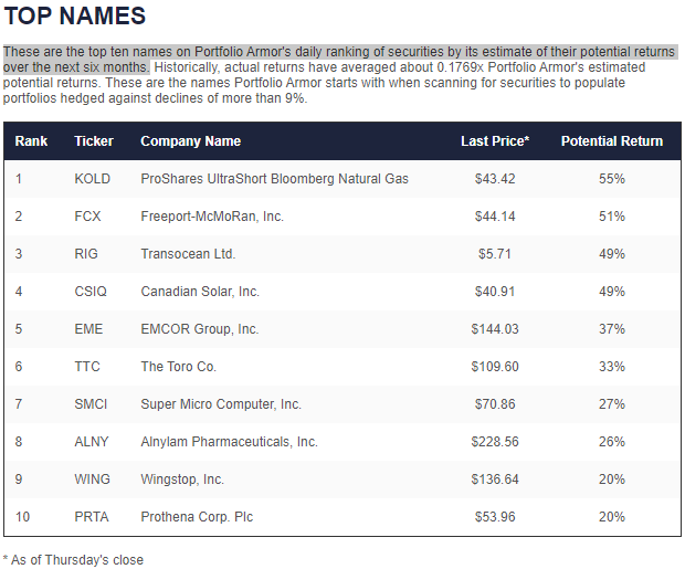 These were Portfolio Armor’s top ten names as of Thursday’s close: