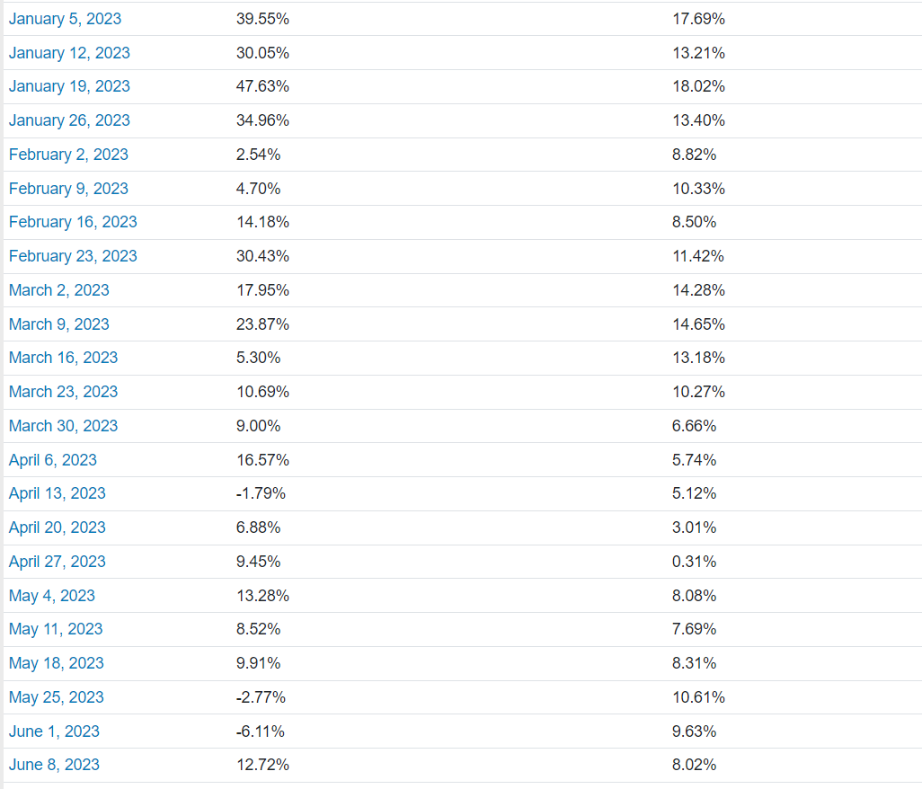 Before we get to this week’s top ten names, let’s look at the final, 6-month performance of our top ten names from June 8th.