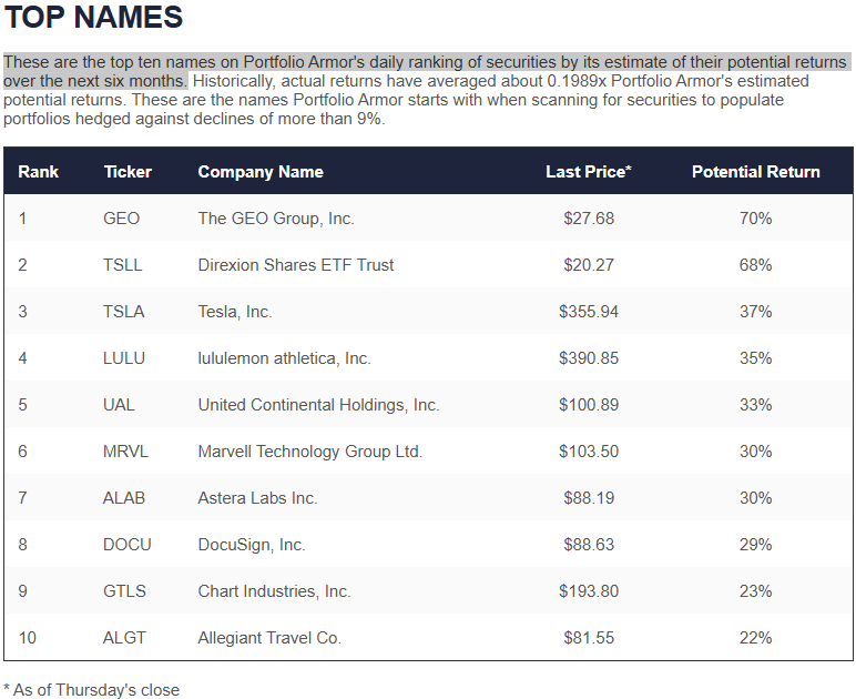 Below are Portfolio Armor’s current top ten names as of Thursday’s close.