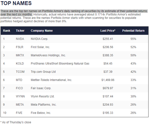 These were Portfolio Armor’s top ten names as of Thursday’s close: