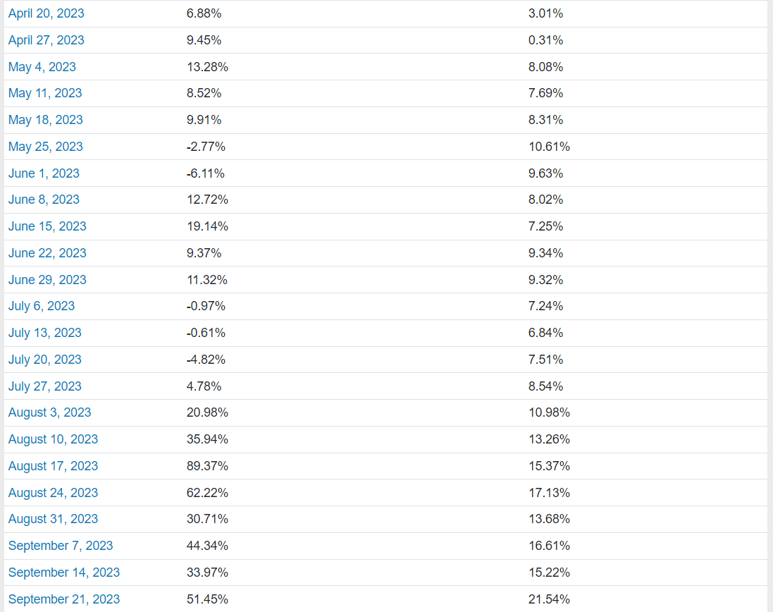 That was the 28th top names cohort of 38 since we started this Substack that beat the market (PA top ten returns are on the left below; SPY returns on the right).