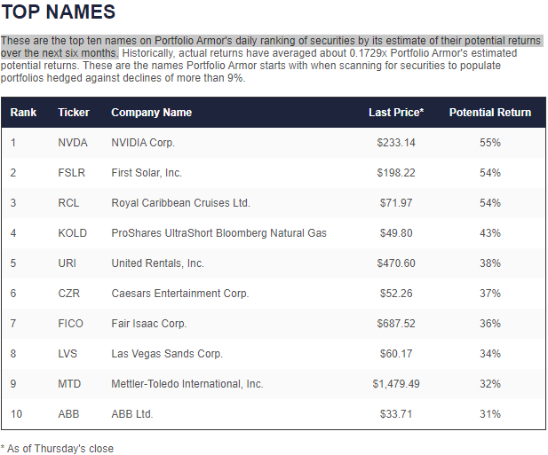 These were Portfolio Armor’s top ten names as of Thursday’s close:
