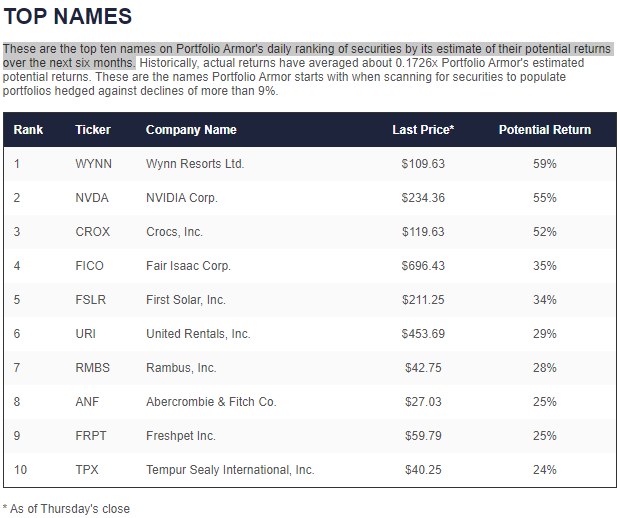 These were Portfolio Armor’s top ten names as of Thursday’s close: