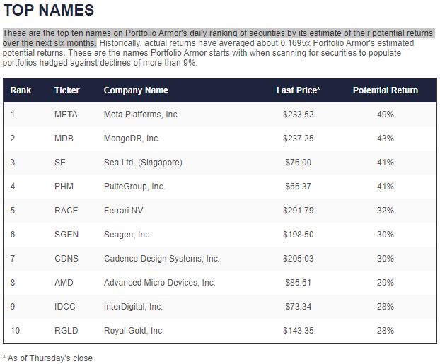 Below are Portfolio Armor’s current top ten names as of Thursday’s close.
