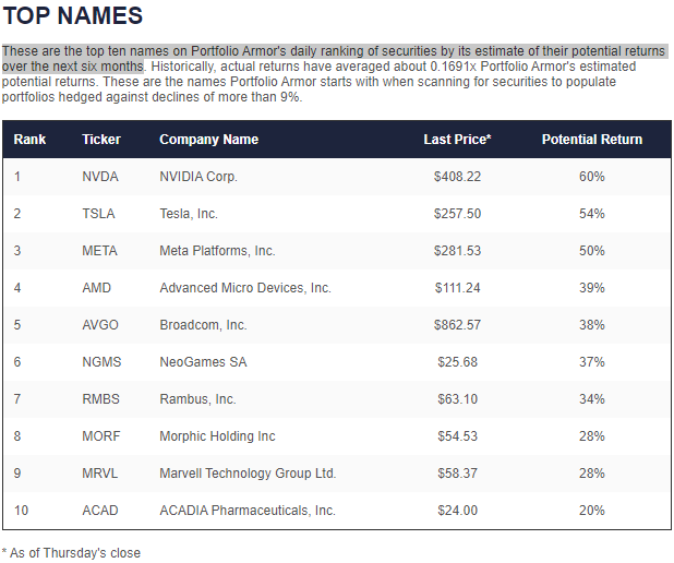 Below are Portfolio Armor’s current top ten names as of Thursday’s close.