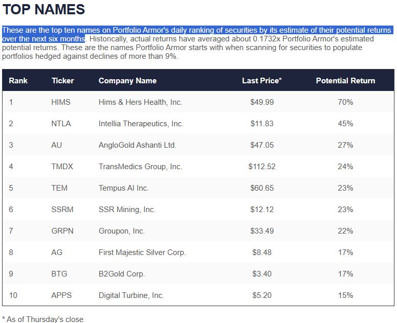 Below are Portfolio Armor’s current top ten names as of Thursday’s close.