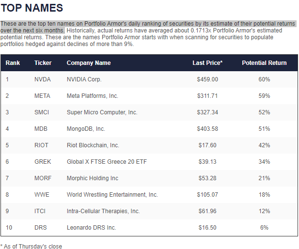 Below are Portfolio Armor’s current top ten names as of Thursday’s close.