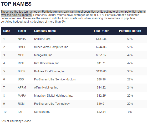 Below are Portfolio Armor’s current top ten names as of Thursday’s close.