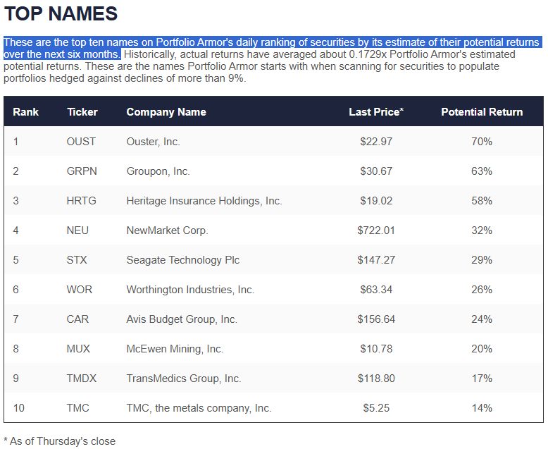 Below are Portfolio Armor’s current top ten names as of Thursday’s close.