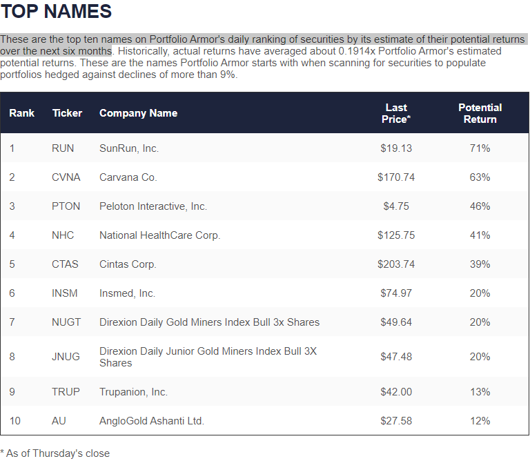 Below are Portfolio Armor’s current top ten names as of Thursday’s close.