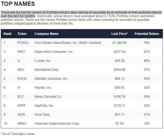Below are Portfolio Armor’s current top ten names as of Thursday’s close.