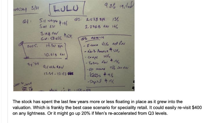 With all that in mind, I placed an options trade on LULU today that could generate a >200% profit if the stock regains just some of today’s losses after it reports earnings next time.