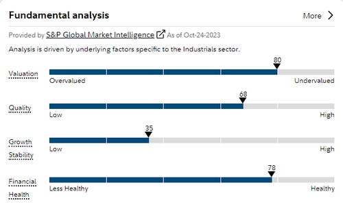 Digging deeper into our oversold industrial, we find that its fundamentals are strong, except for growth stability.