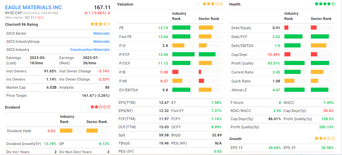 Here’s an example from a stock we bet on last week, Eagle Materials, Inc. (EXP 0.00%↑ ).
