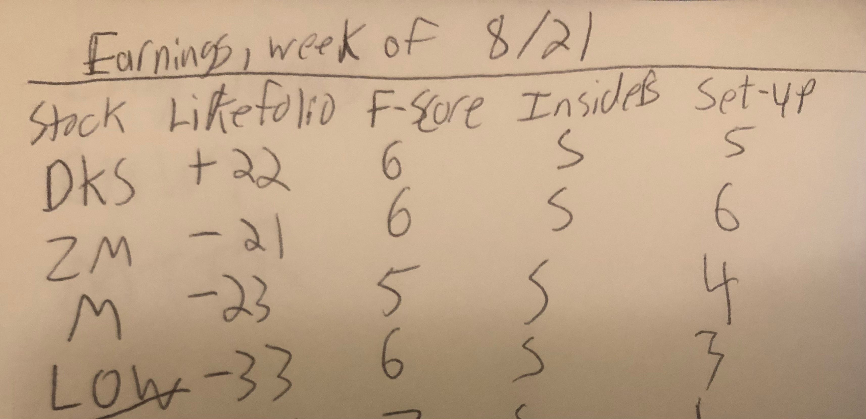 That’s also why we’ve been looking at five other metrics in addition to social data when placing earnings trades: