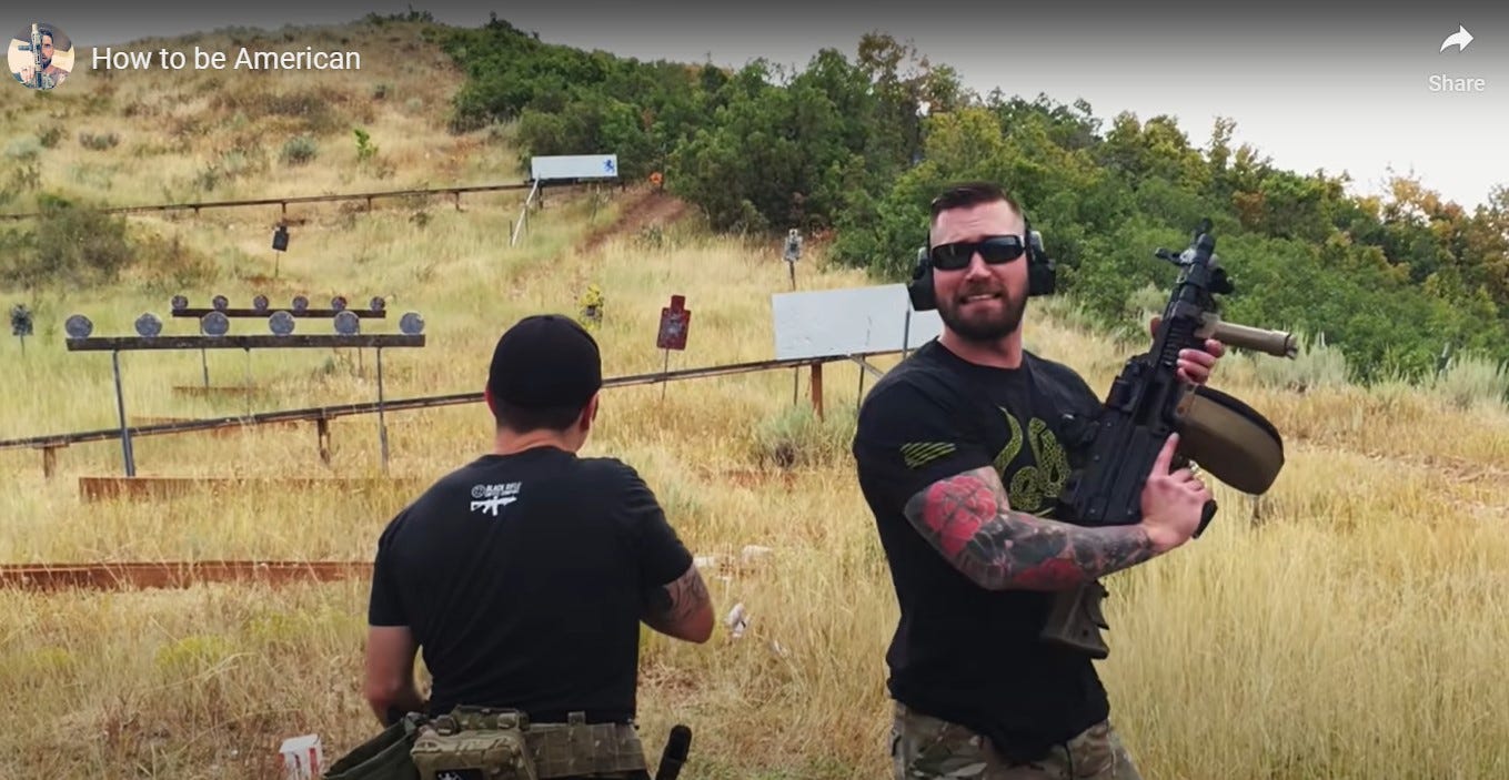 In many ways, the imagery that Black Rifle indulges is actively harmful. Male-to-female transsexuals famously have a cartoonish, porn-influenced, stereotypical idea of what being a woman is like. That’s why drag queens have such a garish, over-the-top look. BRCC ads evoke the same idea, but for men. Their target demographic is, in a sense, male-to-male transsexuals. The ads reduce veterans from citizen soldiers to a pantomime of desperate masculinity, guys who need tattoos, whiskey, and twenty-seven different guns to feel like “real men.” BRCC ads are supposed to trigger “snowflake” liberals, but they’d be just as crass and ridiculous to a World War 2 veteran in 1946.