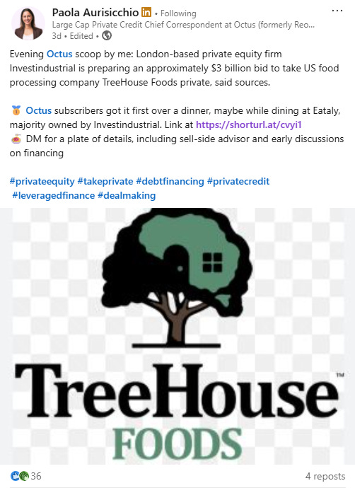 The stock is Treehouse Foods (THS 0.00%↑), and this appears to be the report moving the stock: