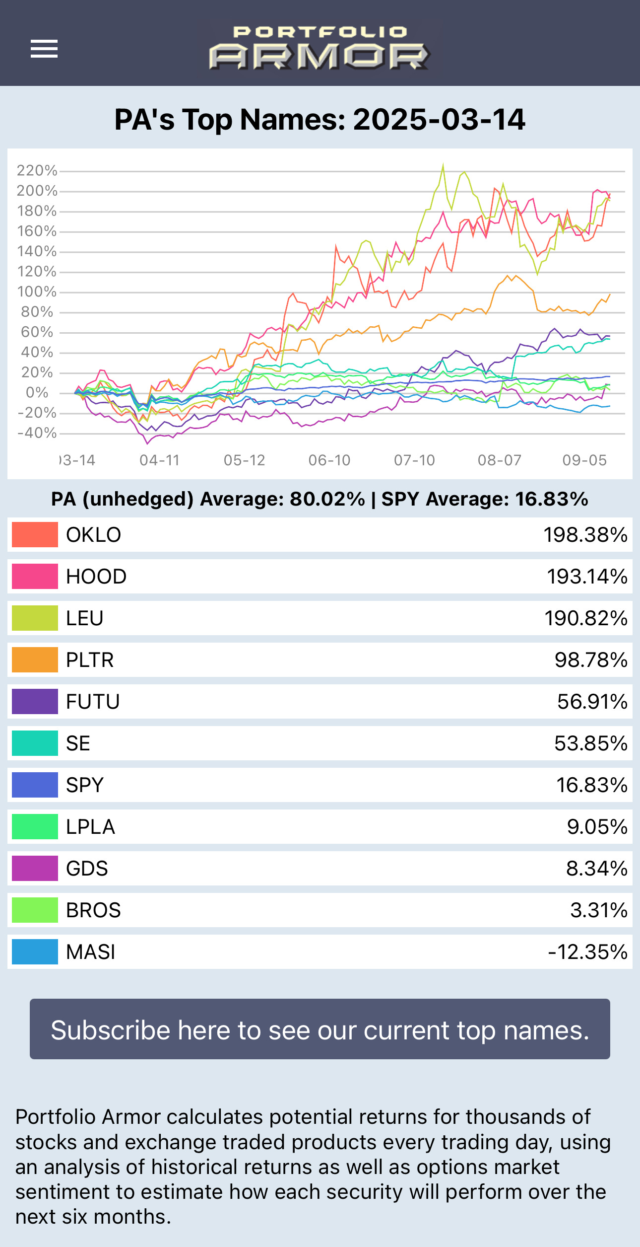 I’m targeting one of last night’s Portfolio Armor top names today. Two reasons.