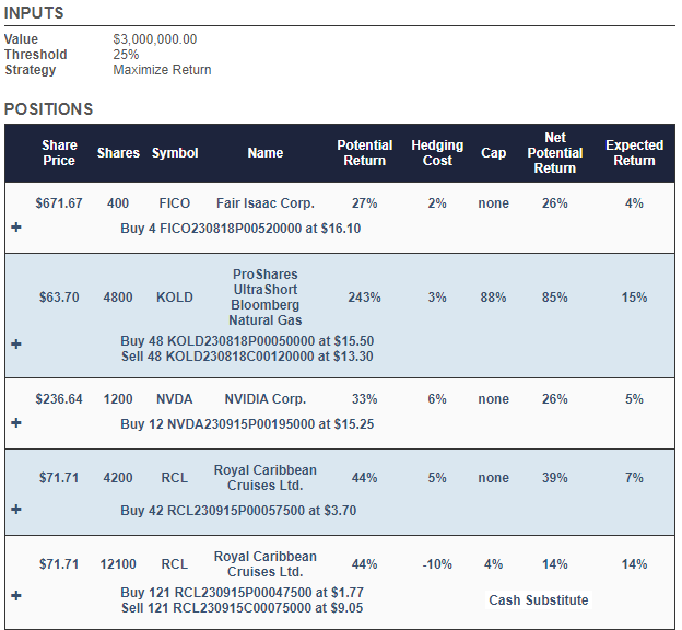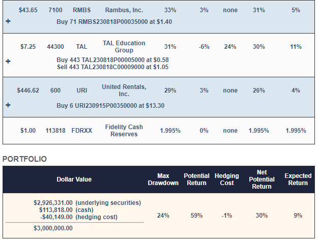 Those top names come from a daily ranking of every security with options traded on it in the U.S., where Portfolio Armor’s algorithm estimates their potential returns over the next six months, net of hedging costs.