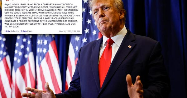 I am well past tired of Trump and frankly find much if his recent behavior embarrassing, but a thousand January 6ths is absolutely the appropriate response if he is indicted. I’m not advising anyone to break the law, but the Founders would.